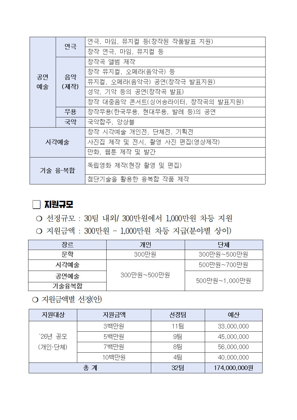 「2026 창작예술지원 공모사업」 예술인(단체) 모집 공고 ★단체★